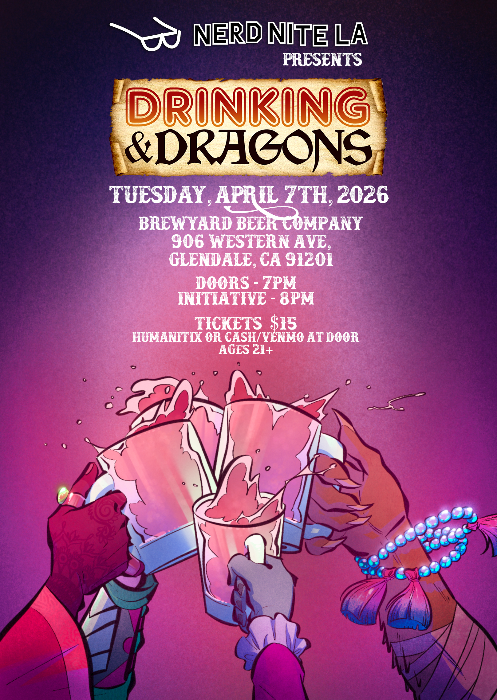 Gather your party and set a quest to DRINKING & DRAGONS! Costumes are encouraged!